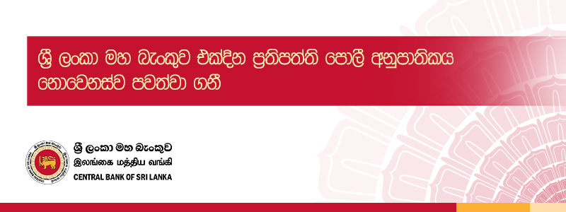 ශ්‍රී ලංකා මහ බැංකුව එක්දින ප්‍රතිපත්ති පොලී අනුපාතිකය නොවෙනස්ව පවත්වා ගනී